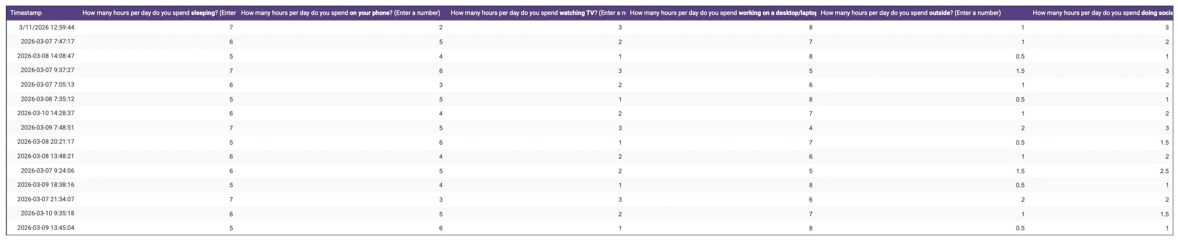 ^ Here you can see the raw results of the form ^